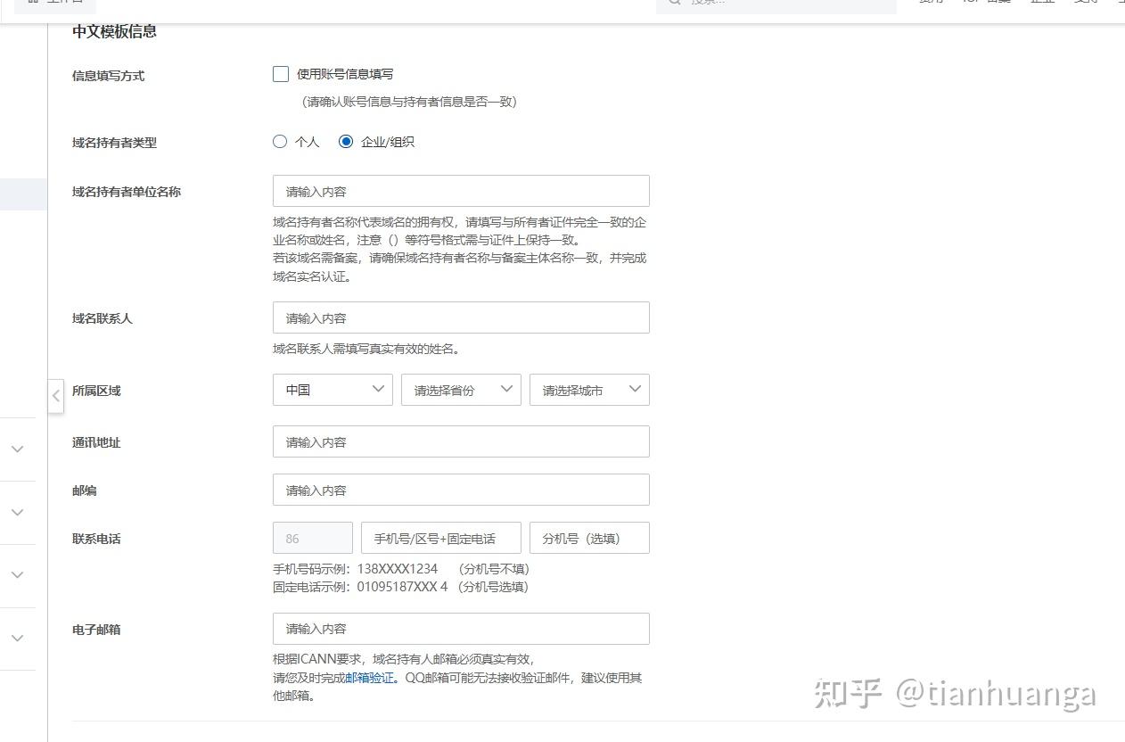 域名持有者需要和阿里云賬號實名者信息保持一致,我這里以企業為例,講解一下
